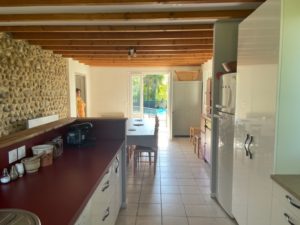 UN GRAND SALON, CHEMINÉE ET UNE CUISINE TOUTE ÉQUIPÉE.